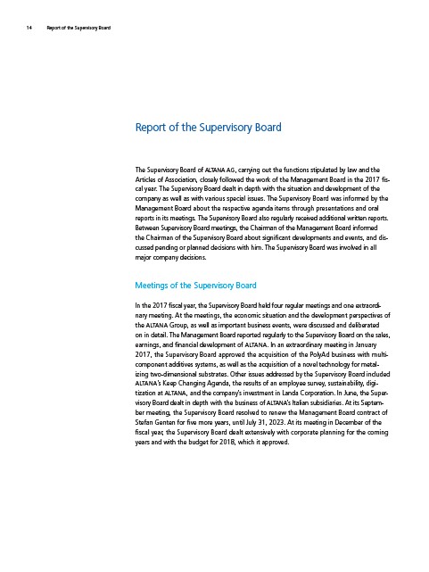 earnings, and financial development of ALTANA. In an extraordinary meeting in January