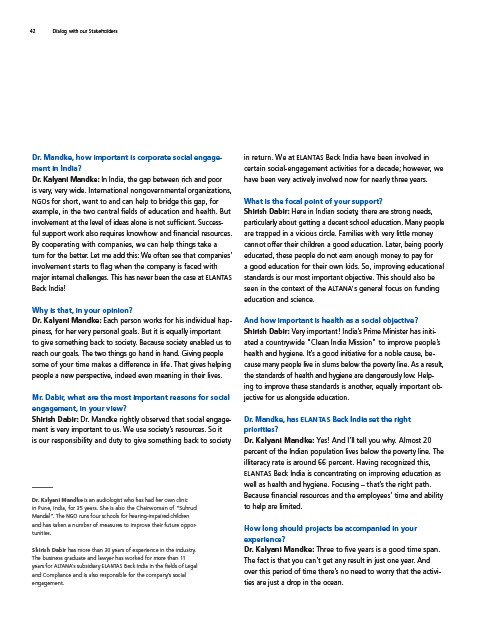 42 Dialog with our Stakeholders