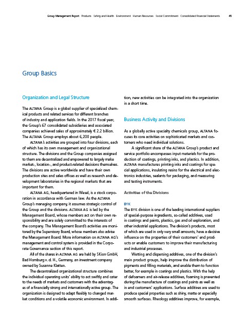 ALTANA AG, headquartered in Wesel, is a stock corpo-