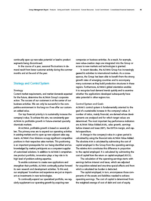 calculated by using the financial ratio ALTANA Value Added.