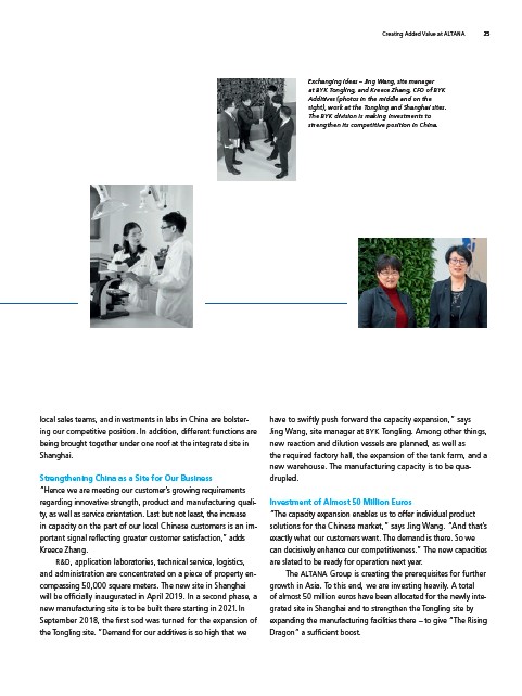Jing Wang, site manager at BYK Tongling. Among other things,