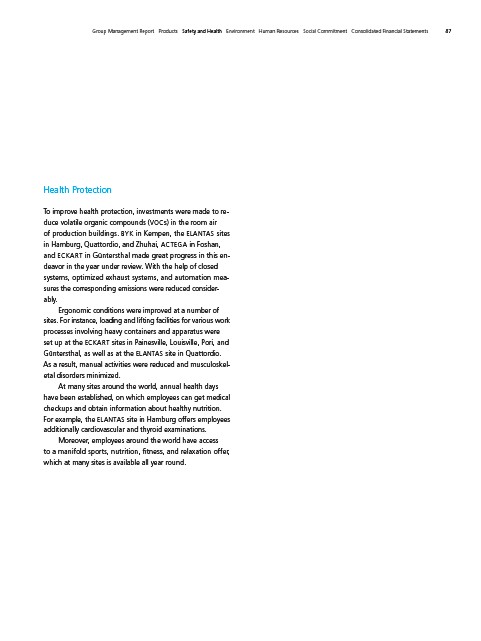 Group Management Report Products Safety and Health Environment Human Resources Social Commitment Consolidated Financial Statements 87