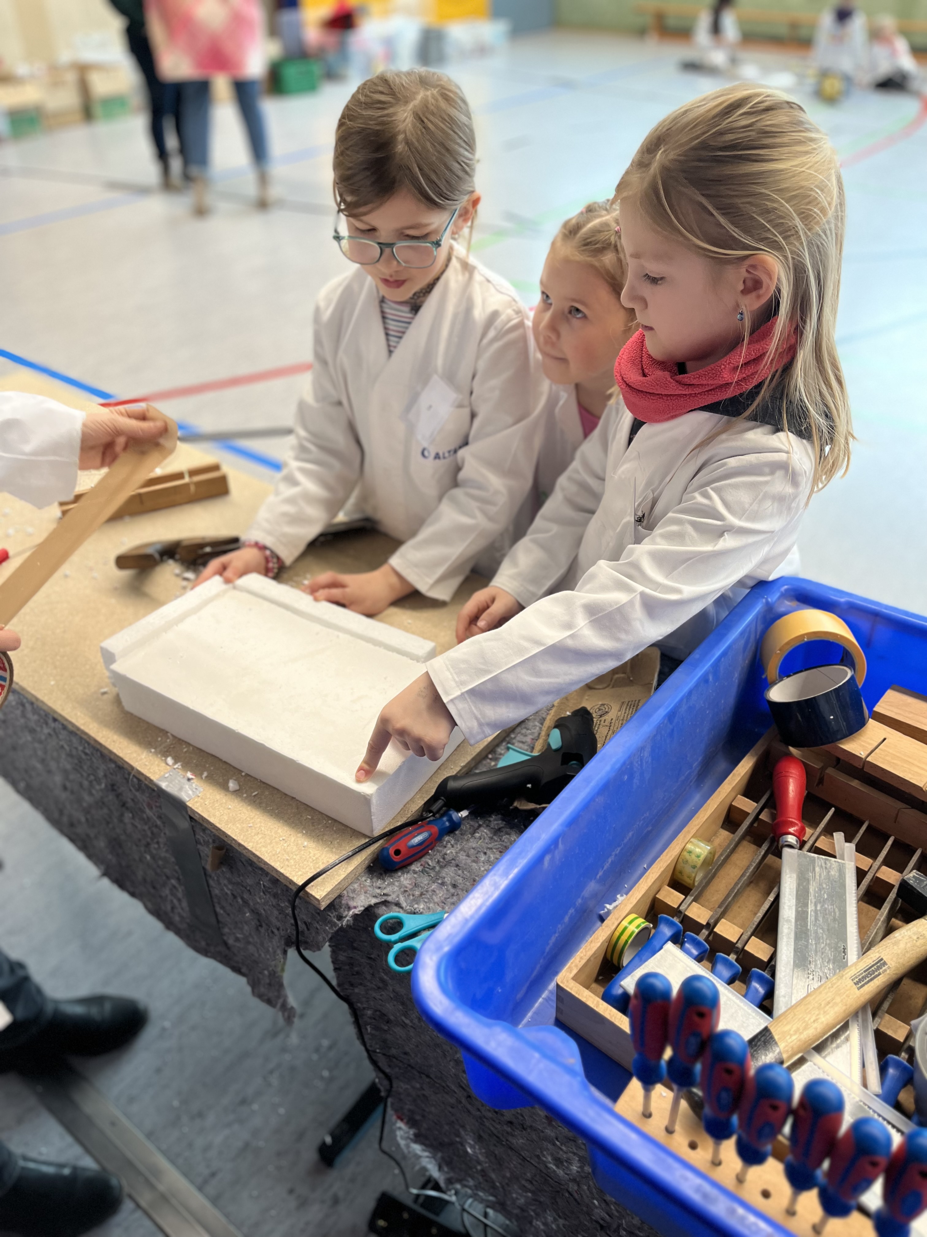 For one week, first and second grade and kindergarten children participated as researchers in the House of Junior Researchers educational project in Wesel. Accompanied by guides from the elementary school, the daycare center, BYK (a division of ALTANA AG), and many parents, the children gain their first learning experiences in mathematics, computer science, natural sciences, and technology (STEM subjects).