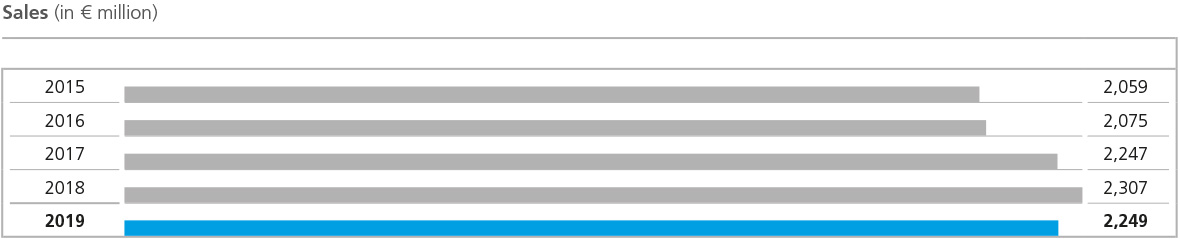 This means that we did not achieve the operating sales growth in a range between 1 % and 5 % forecast at the beginning of the year for 2019. The main reasons for the shortfall were sluggish demand from key industrial sectors, especially the automotive industry, and the general economic slowdown, especially in China. The decline is almost exclusively due to a demand-driven reduction in sales volumes, which affected all business units, albeit to varying degrees.