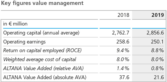The slight improvement in value management key figures forecast for 2019 could not be achieved due to the weaker earnings performance.