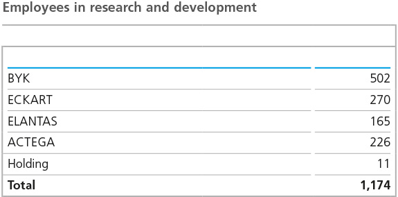 In addition to the activities in the business divisions, selected innovations are initiated and coordinated at the ALTANA level, aimed at tapping new business fields and absorbing technology and market trends. This is achieved through different procedures, namely, through the ALTANA Institute, the central management of technology platforms, as well as corporate venturing investments.