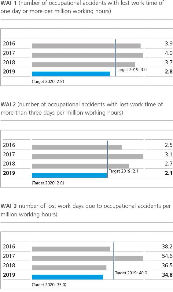 Furthermore, ALTANA was able to improve all three accident indicators (WAI 1, WAI 2, and WAI 3) in the year under review. Compared to the previous year, the WAI indicators decreased in all three categories. Thanks to this encouraging development, it was also possible to meet the targets the company had set itself for the year under review.