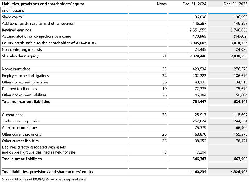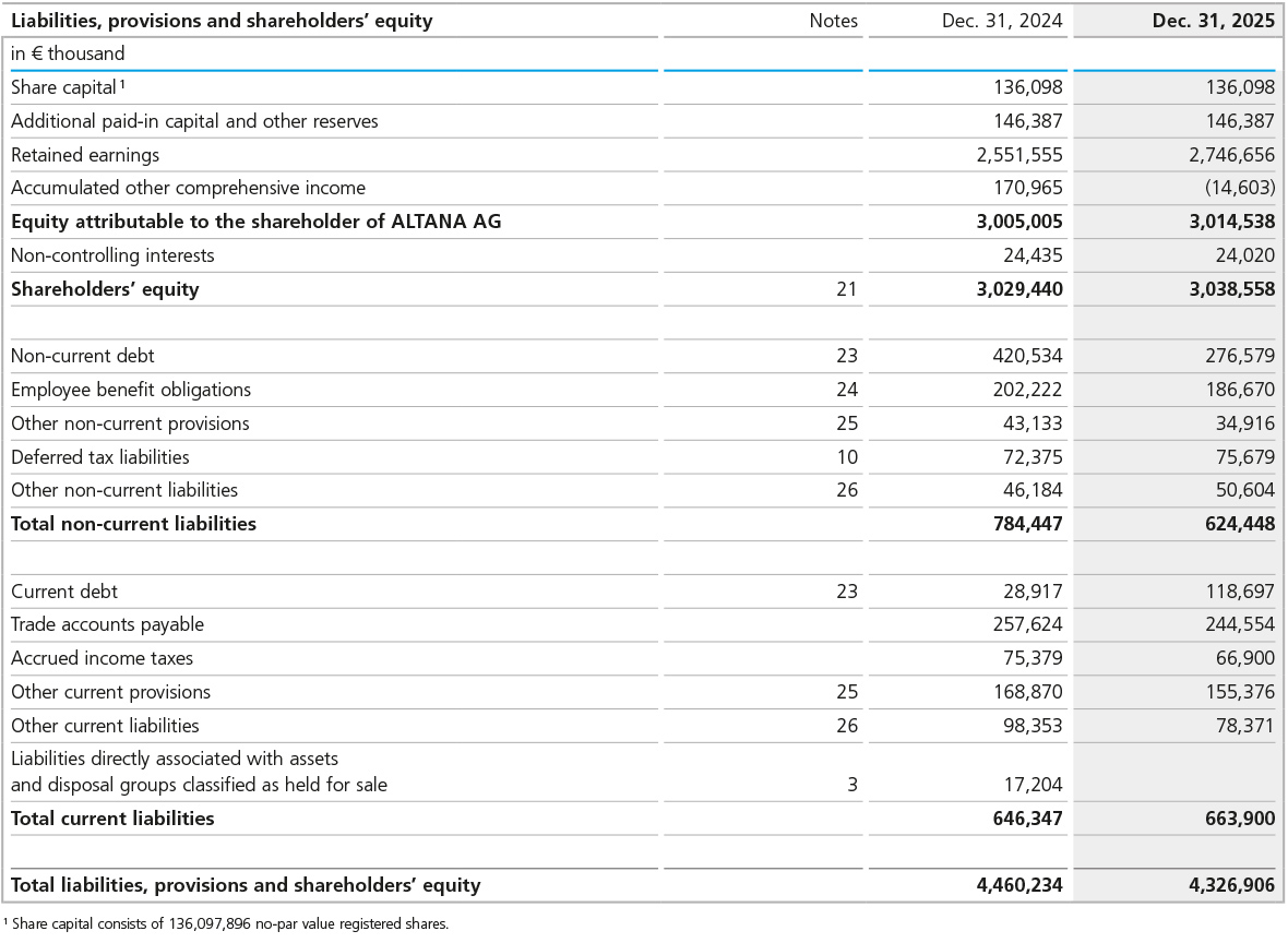 ALTANA Group Consolidated Statement of Financial Position