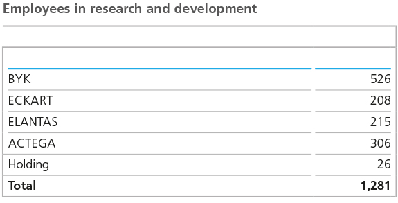 At ACTEGA, staff numbers increased by 31 to 1,406 (previous year: 1,375). While the workforce in production declined, research and development as well as marketing and sales recorded increases in the number of employees.
